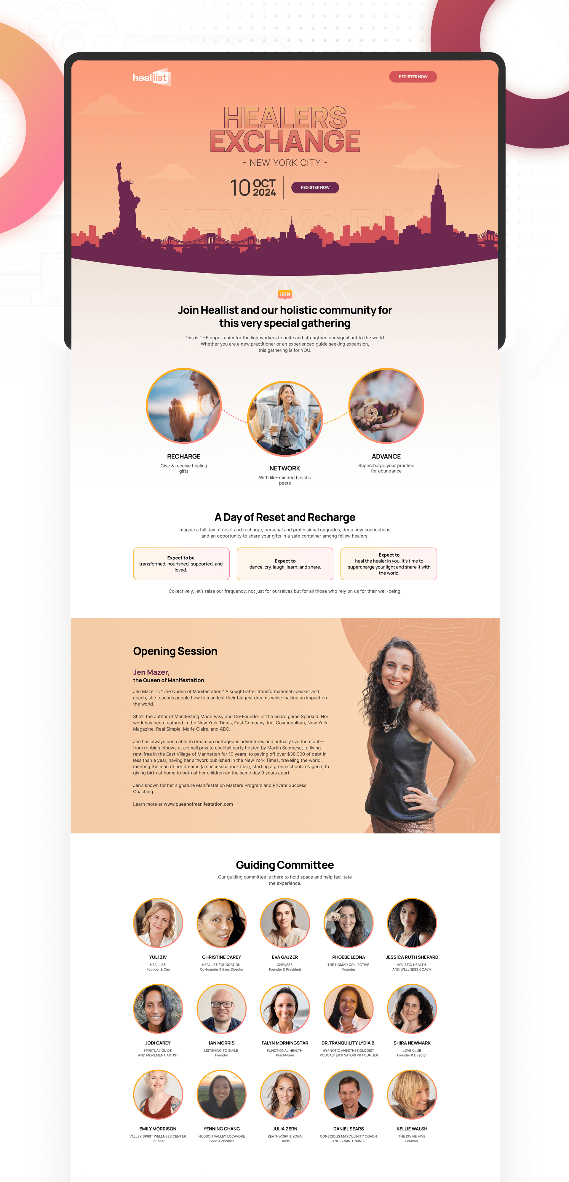 I created a visually engaging and user-friendly landing page design for Healers Exchange using Figma. The design includes sections for event highlights, speaker details, schedule, and ticket purchase options. It focuses on a clean, professional layout with intuitive navigation and vibrant visuals to capture the event’s essence and drive user interaction.